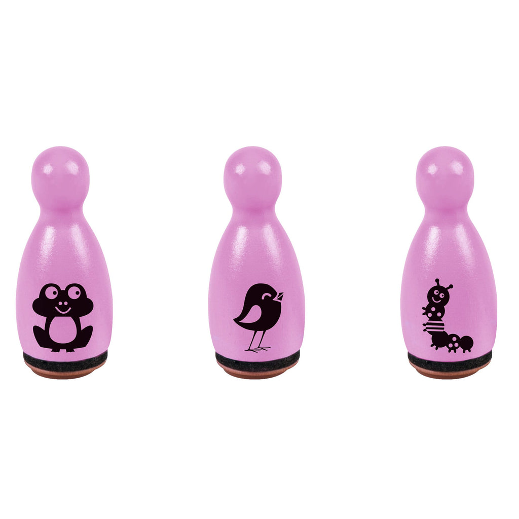 Mit diesem fröhlichen Holzstempel-Set in leuchtendem Lila können Kinder und Erwachsene ihrer Kreativität freien Lauf lassen! Das Set enthält drei liebevoll gestaltete Tiermotive, die perfekt für verspielte und naturinspirierte Designs sind:
