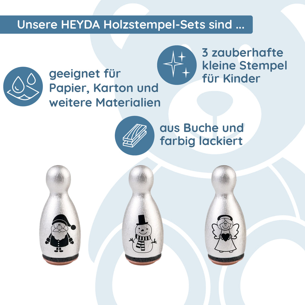 HEYDA Holzstempel-Figuren Set "Weihnachten" – Silber (3 Stück - Ø 12 mm)