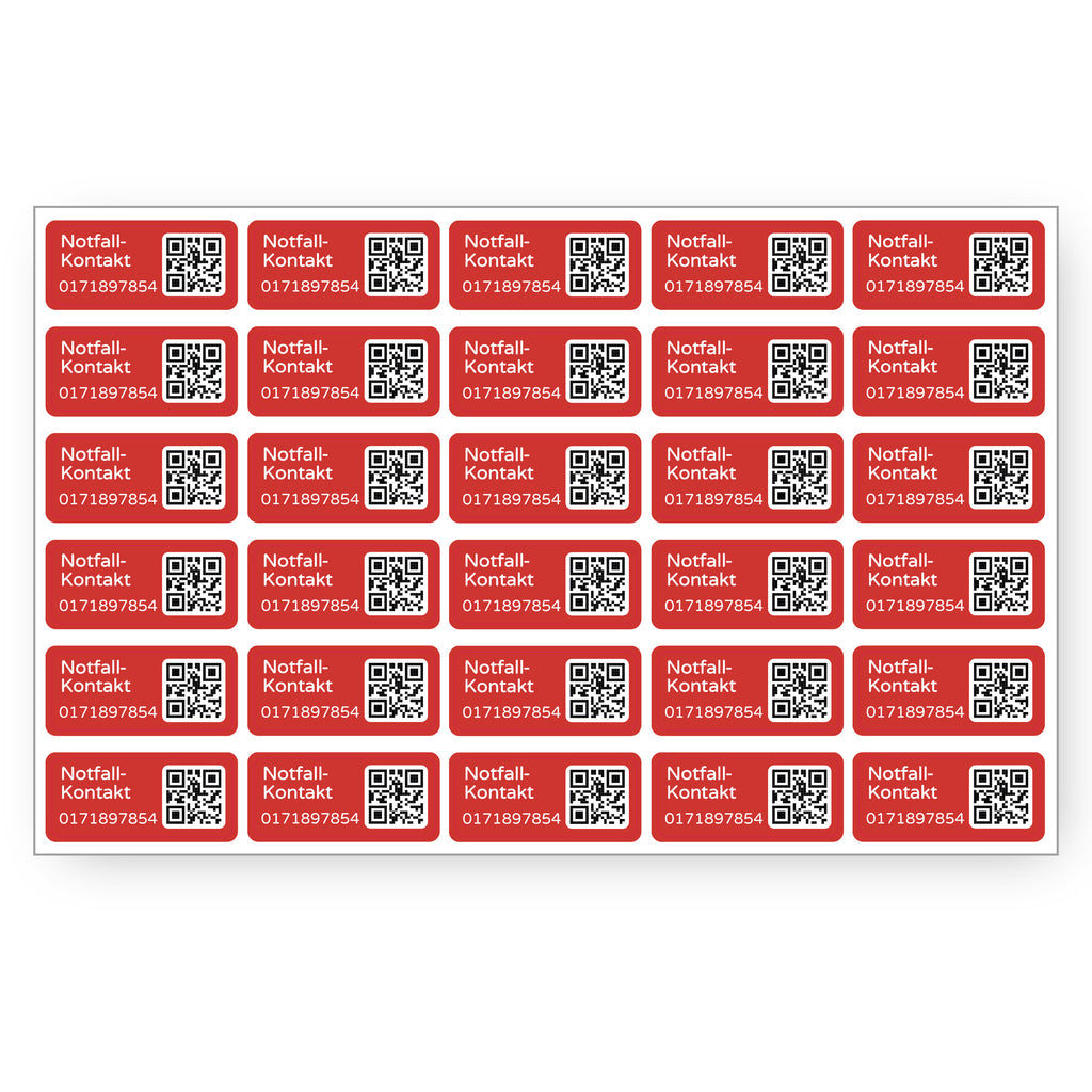 Sorge im Ernstfall für schnelle Erreichbarkeit – mit personalisierten Notfallkontaktaufklebern im handlichen Format 30 × 13 mm.