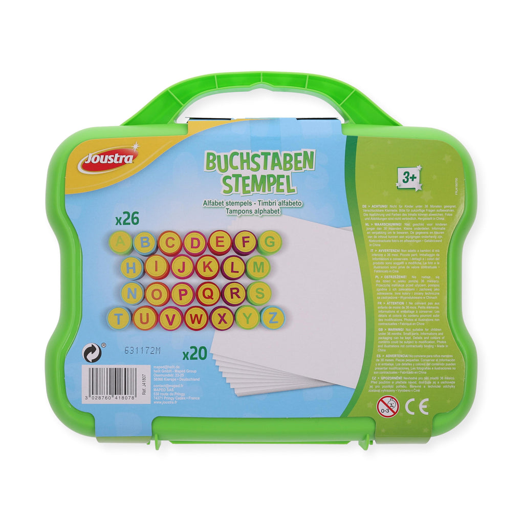 Mit diesem liebevoll gestalteten Stempel-Set macht das Lernen richtig Spaß! Die selbstfärbenden Stempelbuchstaben im praktischen Koffer sind die perfekte Kombination aus Spiel und Förderung – ideal für kleine ABC-Entdecker ab 3 Jahren.