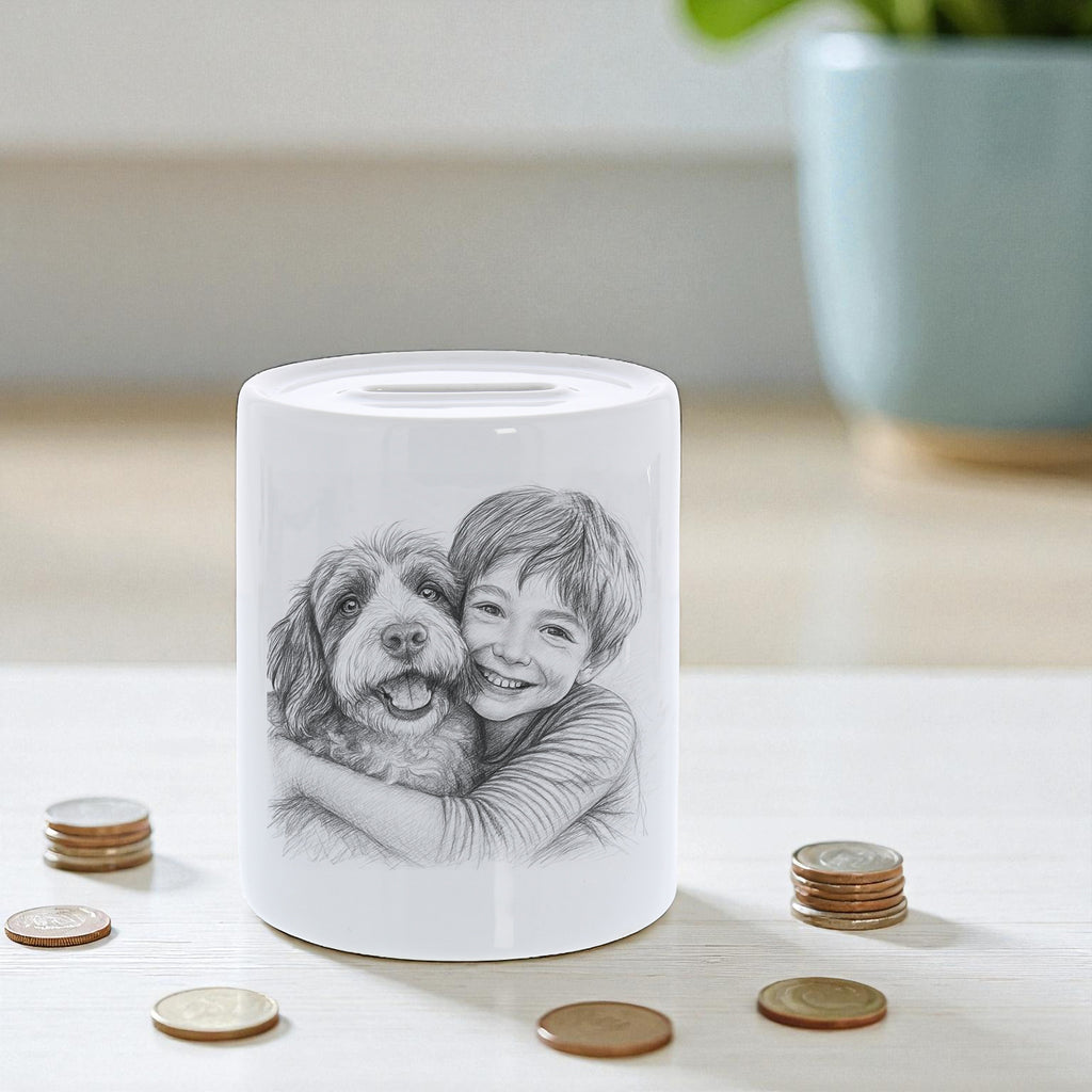 Mit dieser personalisierten Keramik-Spardose 🏺 macht Sparen richtig Spaß! Lade einfach Dein Foto hoch 📸 – wir verwandeln es für Dich in eine einzigartige Karikatur ✏️, die zusammen mit Deinem Wunschtext 💬 auf die Spardose gedruckt wird. So entsteht ein witziges, persönliches Unikat, das garantiert für gute Laune sorgt!