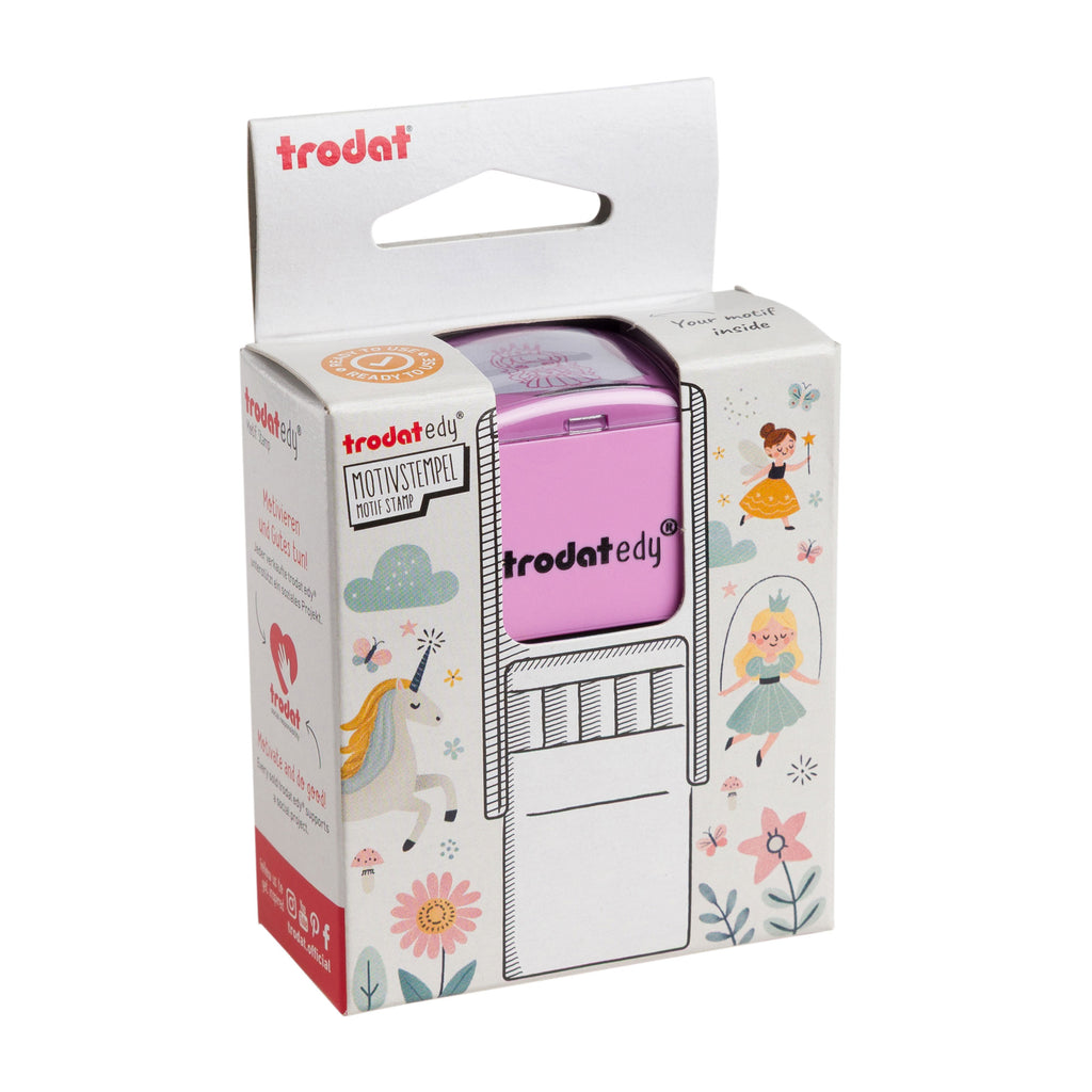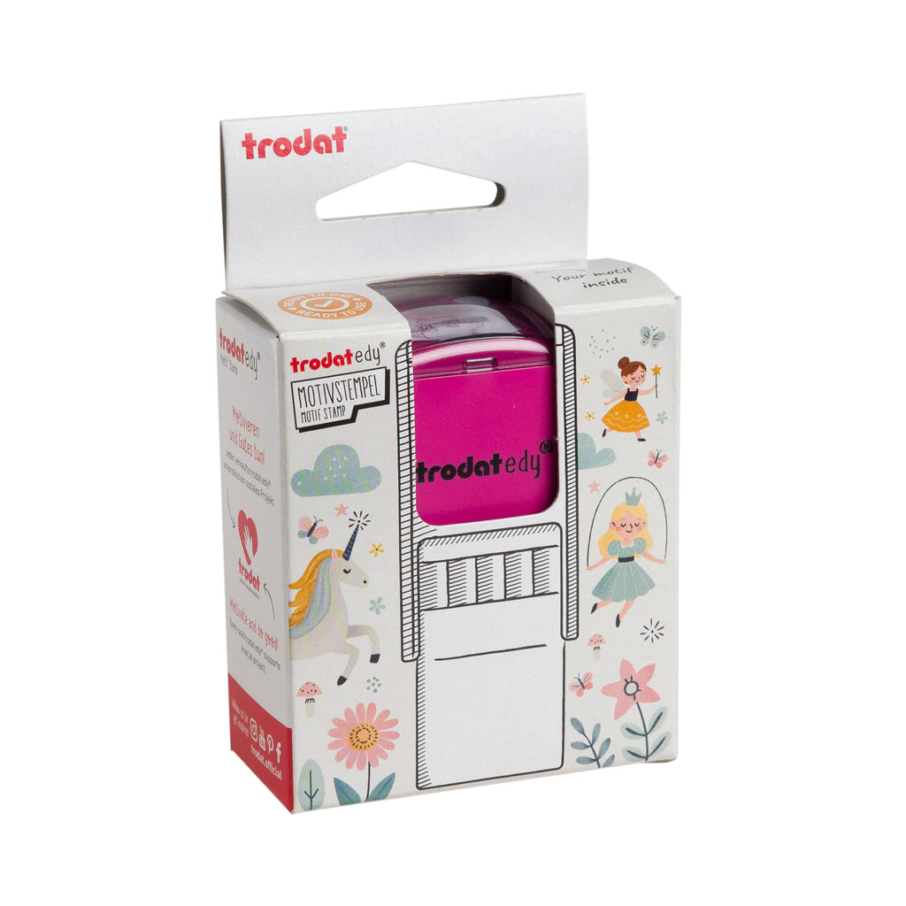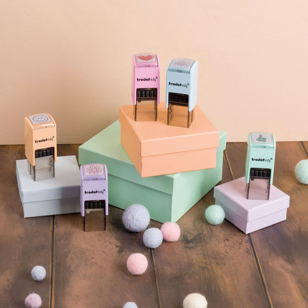 Die Trodat edy® Motivstempel sind die perfekte Wahl, um deine Wertschätzung und Anerkennung auf kreative Weise zu zeigen. Mit fünfzehn verschiedenen Gehäusefarben und fünfzehn einzigartigen Motiven – Blume, Daumen, Herz, Smiley, Regenbogen, Stern, Fee, Prinzessin, Einhorn, Schmetterling, Brontosaurus, Plesiosaurus, Stegosaurus, T-Rex und Triceratops – bieten diese Stempel zahlreiche Möglichkeiten, um kleine Botschaften zu hinterlassen.