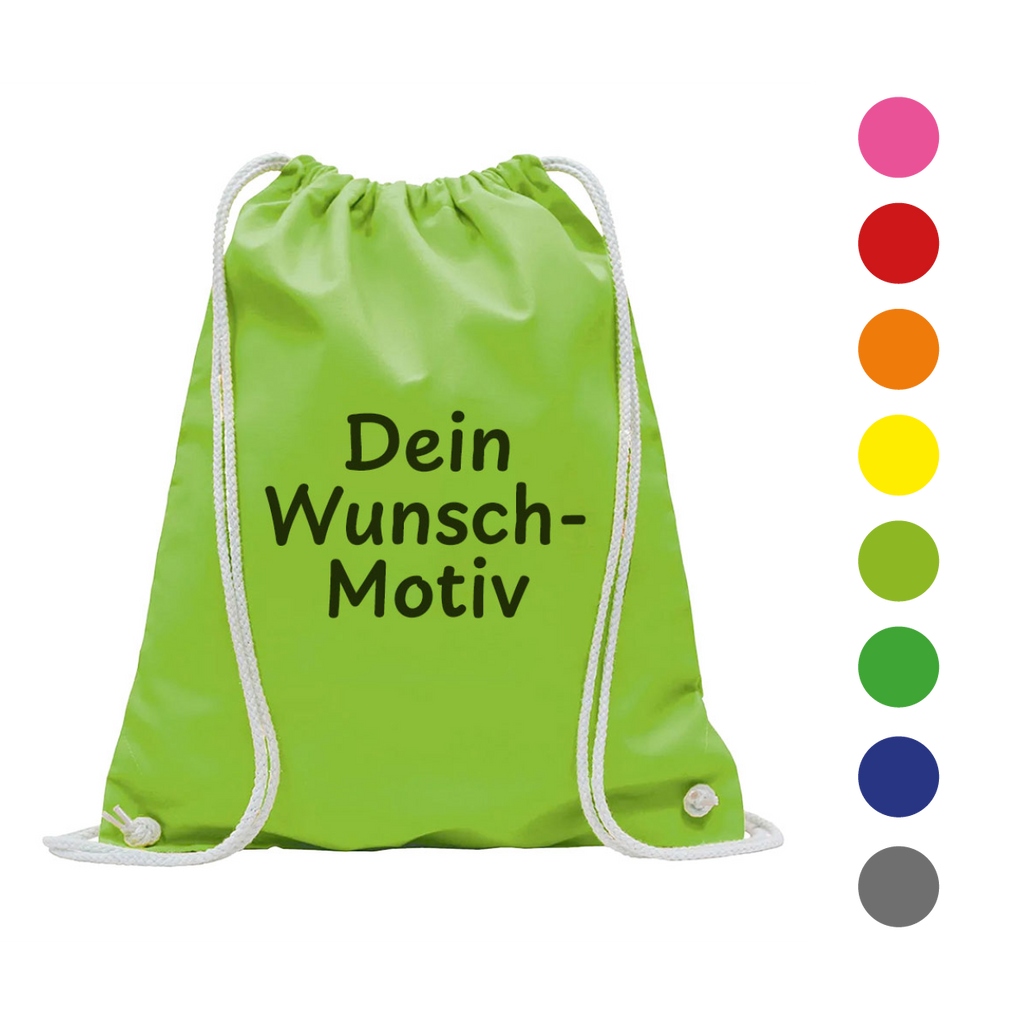 Whether for school, sports or leisure – with your individually printed gym bag, you're right on trend. It's not only practical, but also a stylish accessory that accompanies you in everyday life. The best part: You design it according to your wishes and get a real one-of-a-kind – no off-the-rack bag!