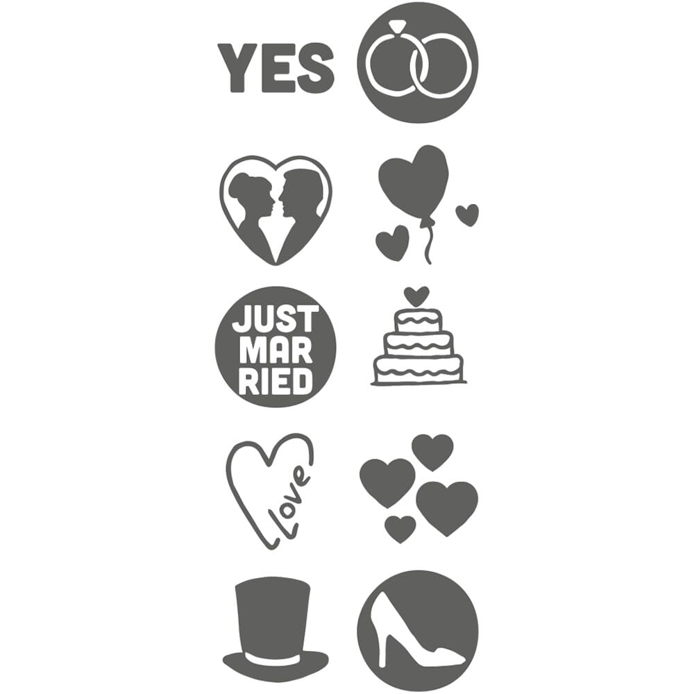 This set includes 10 different stamp plates that match the wedding theme, simply exchange