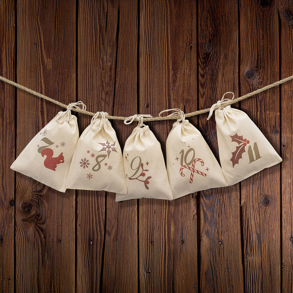 Calendrier de l'Avent avec 24 sachets à remplir et personnaliser (avec cordelette)