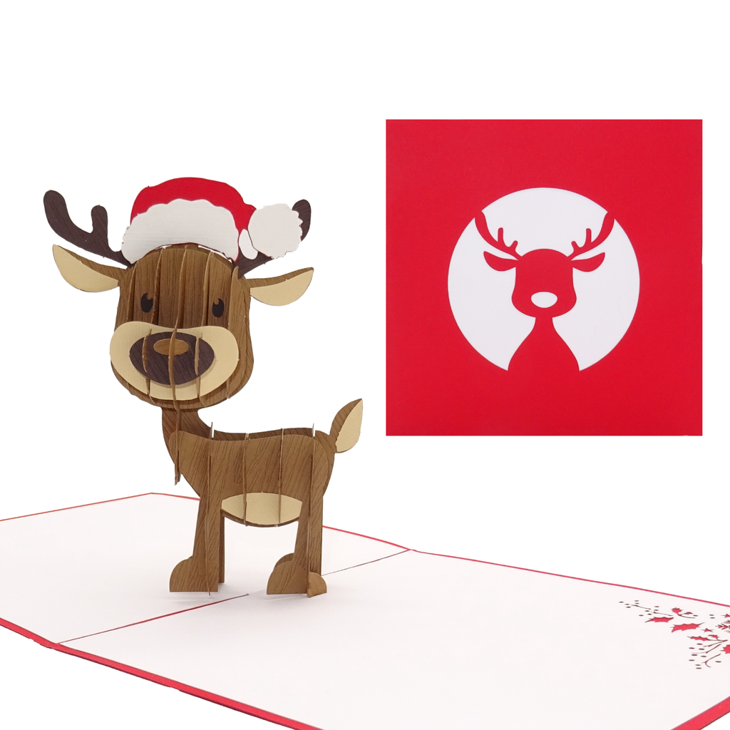 Un message spécial pour Noël ! La carte pop-up « Renne » s'ouvre sur un motif 3D détaillé – un véritable accroche-regard avec un charme festif.