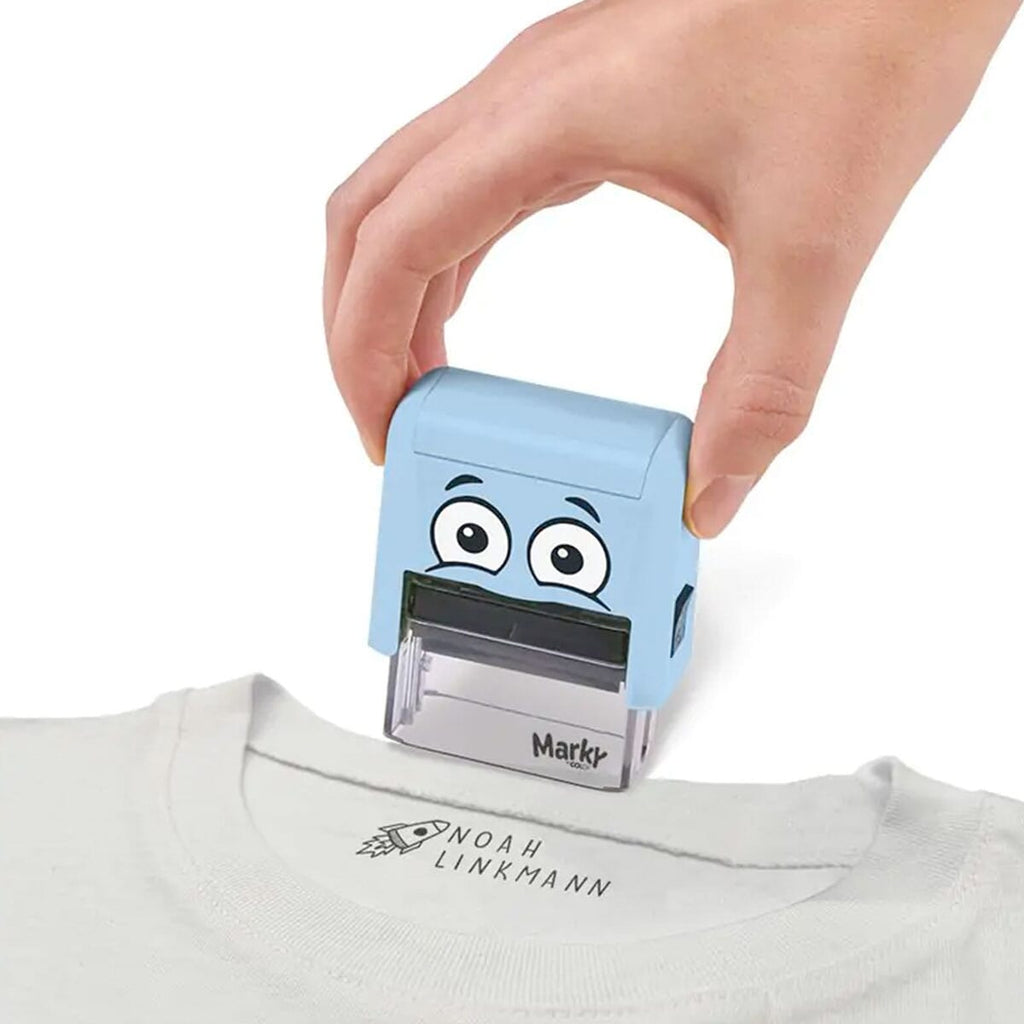 Dinge verlieren und vertauschen gehört mit MARKY, dem praktischen und kindgerechten Markierungsstempel für Schule, Sport und Freizeit, ab sofort der Vergangenheit an. Mit der speziellen, auch dermatologisch getesteten, schwarzen Textilfarbe können nicht nur Textilien, sondern auch Papier, Karton, und viele andere saugfähige Oberflächen direkt bestempelt werden.