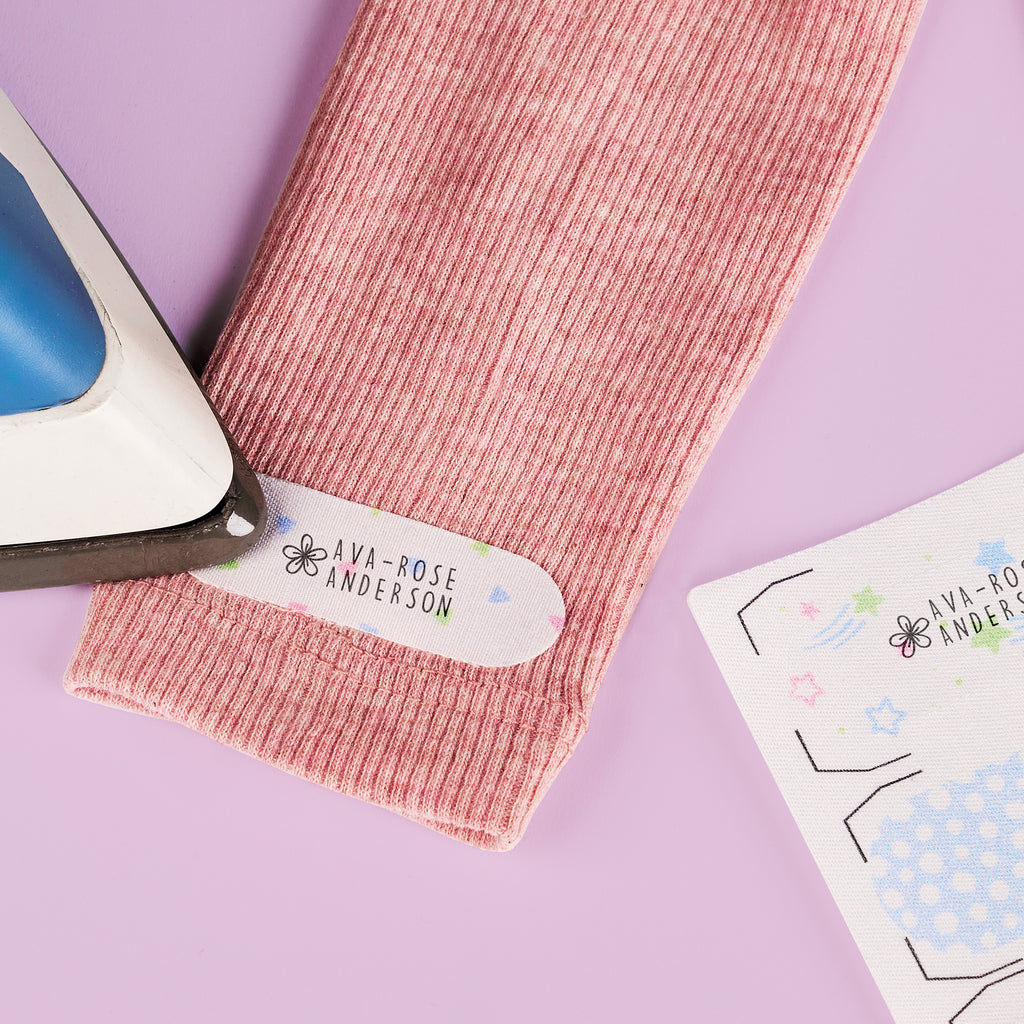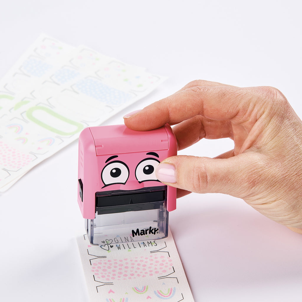 The iron-on labels can be personalized directly with the DIY MARKY stamp – turning each label into an individual name tag. No tedious writing with a pen – just stamp, iron on and done!