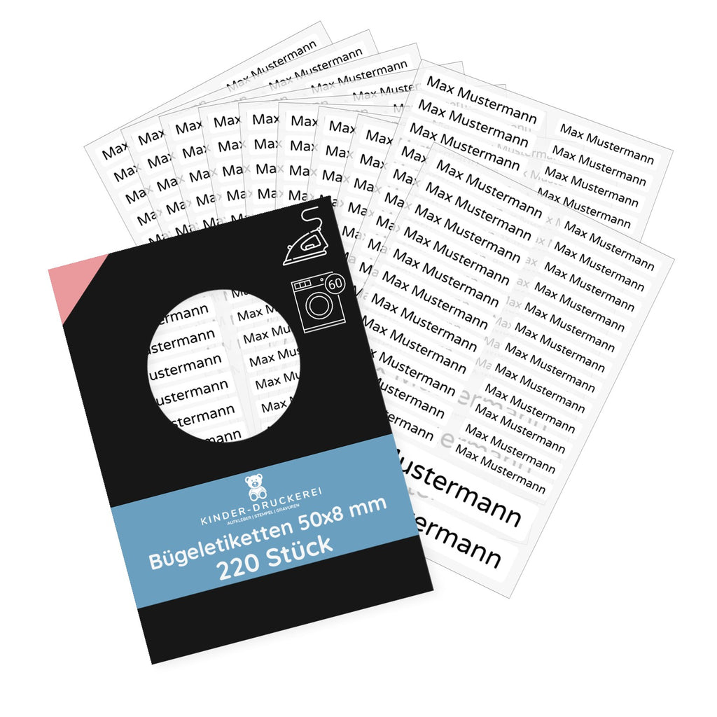 Iron-on labels with names (50x8 mm 220 pieces to iron on)