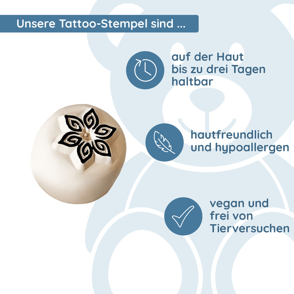 - STYLISH: Our temporary ceramic tattoo stamps are the latest trend! Use them on body and arms to enhance your look. The subtle designs in the size of 1.5 × 1.5 cm look deceptively real and are right on trend.