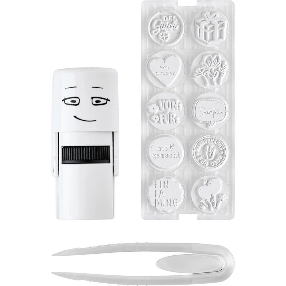 This set contains 10 different stamp plates that match the German theme, simply exchange them