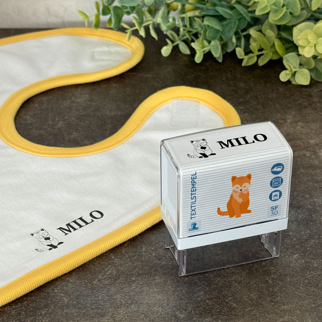 Discover our enchanting fabric stamps with children's designs and custom text – the perfect solution to personalize and mark your little ones' clothing, hats, bags and other textiles individually. This ensures that nothing gets lost and gives your children's textiles a personal touch. And as a gift for birthdays, school enrollment, Easter or Christmas, our fabric stamps are ideal. Whether it's a kindergarten child or elementary school student, our fabric stamps are suitable for children of all ages.