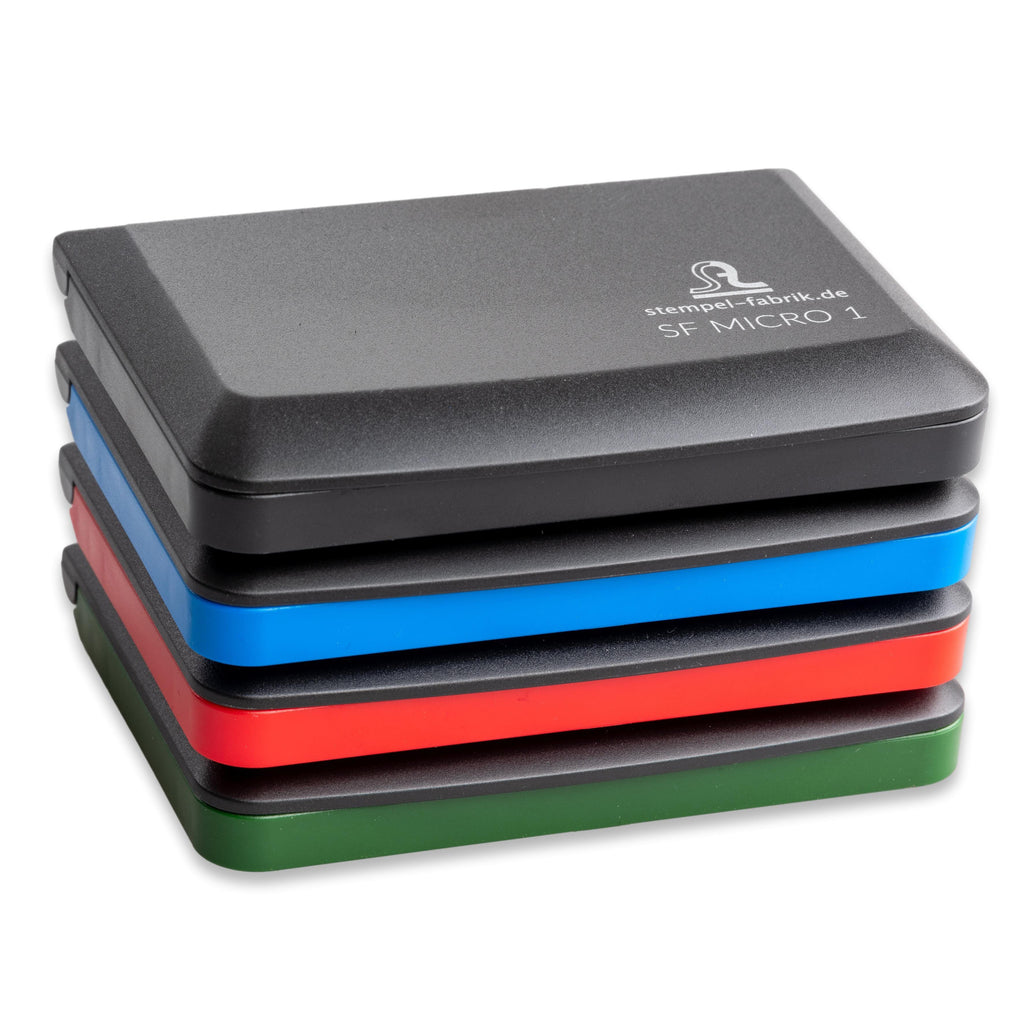 Micro ink pads are an essential accessory for hand stamps in the office or at home. The robust felt insert of the classically hinged ink pad guarantees long-lasting durability even with intensive use. Both the pad material and the ink have been continuously perfected through years of research.