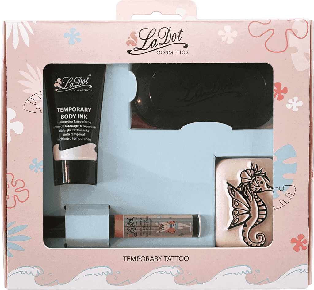 - Ensemble complet - Avec l'ensemble de tatouage LaDot Set 8, vous obtenez tout ce dont vous avez besoin pour un tatouage temporaire. L'ensemble comprend un tampon de tatouage de taille moyenne, un tube de 15 ml d'encre noire hypoallergénique et résistante à l'eau, un tampon encreur de taille moyenne (7,5 x 3,5 cm) et un liner rose.