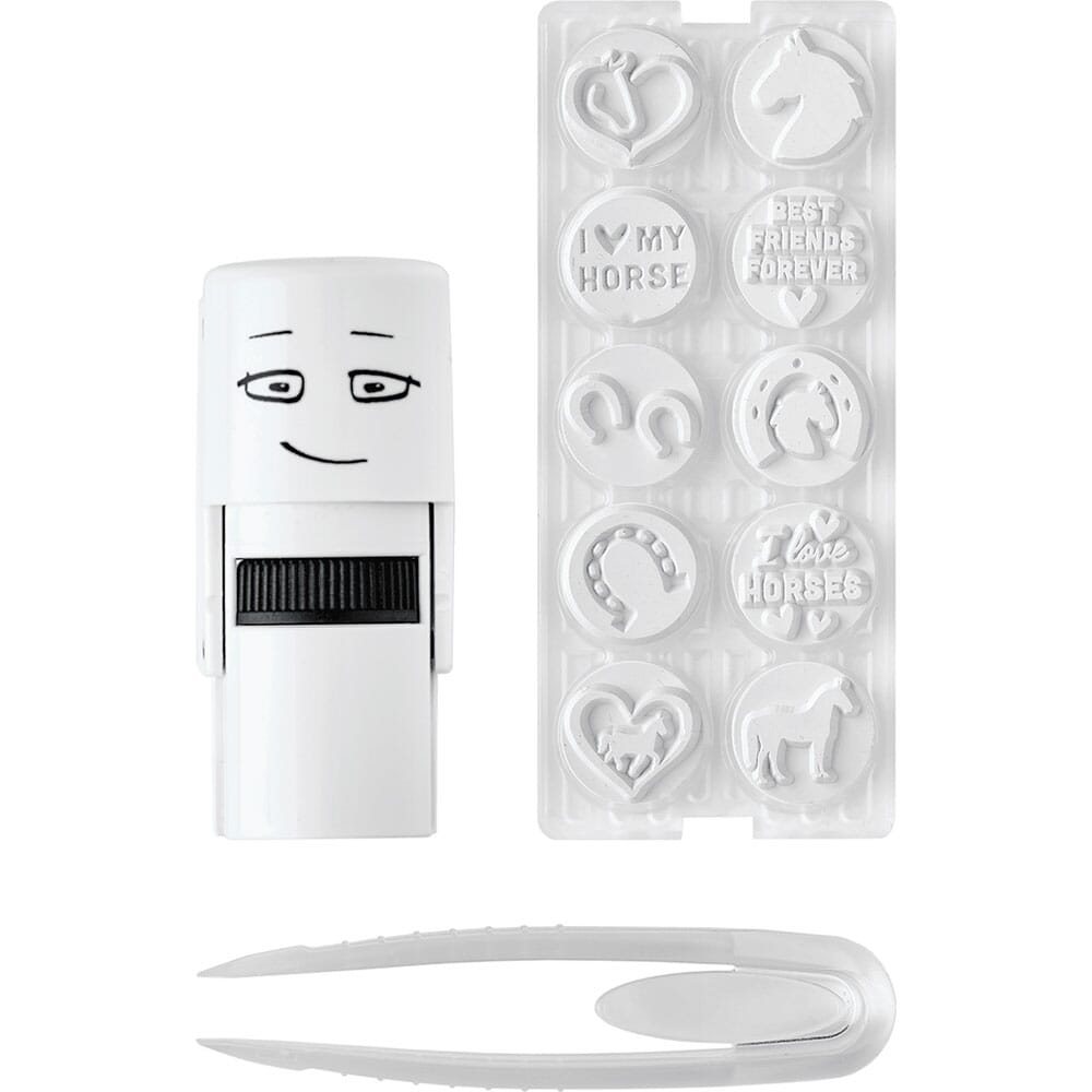 Cet ensemble contient 10 plaques de tampon différentes sur le thème des chevaux, il suffit de les échanger