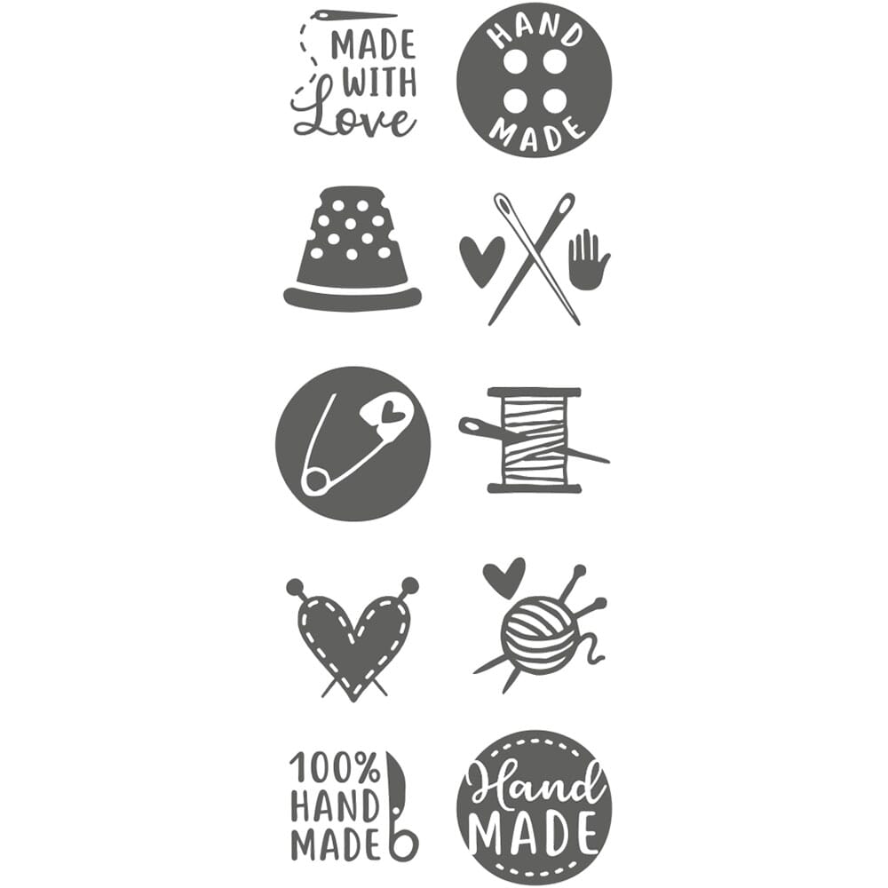 Cet ensemble contient 10 plaques de tampon différentes assorties au thème du fait à la main, il suffit de les échanger