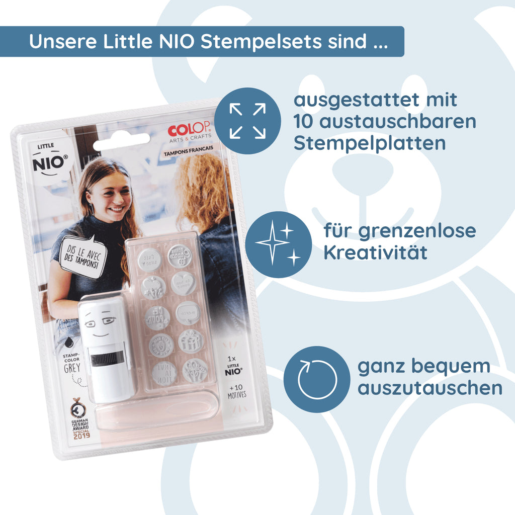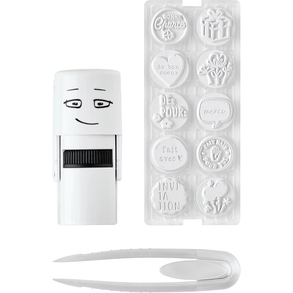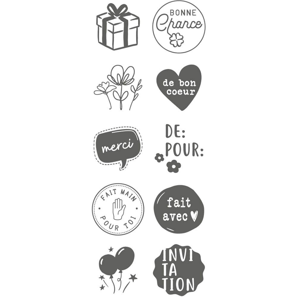 Cet ensemble contient 10 plaques de tampon différentes assorties au thème du français, il suffit de les changer