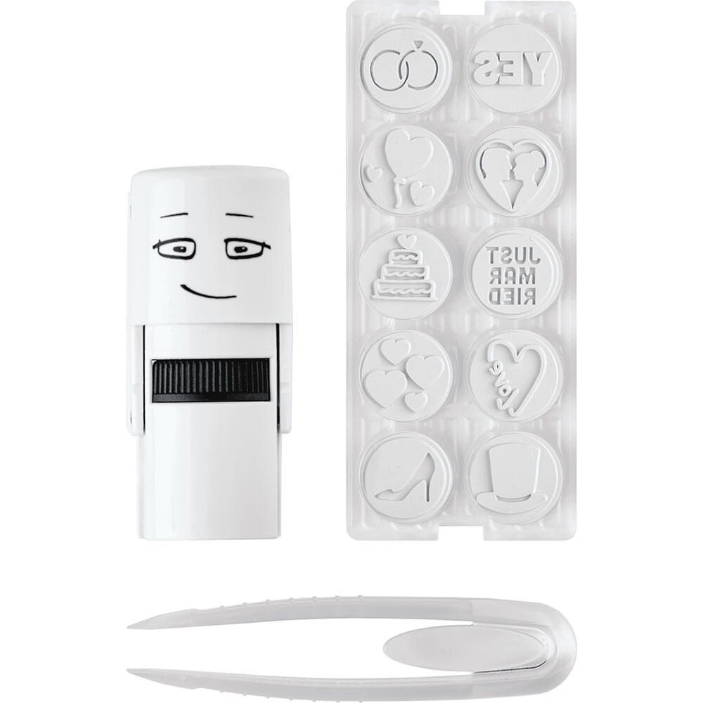 Cet ensemble contient 10 plaques de tampon différentes sur le thème du mariage, il suffit de les échanger